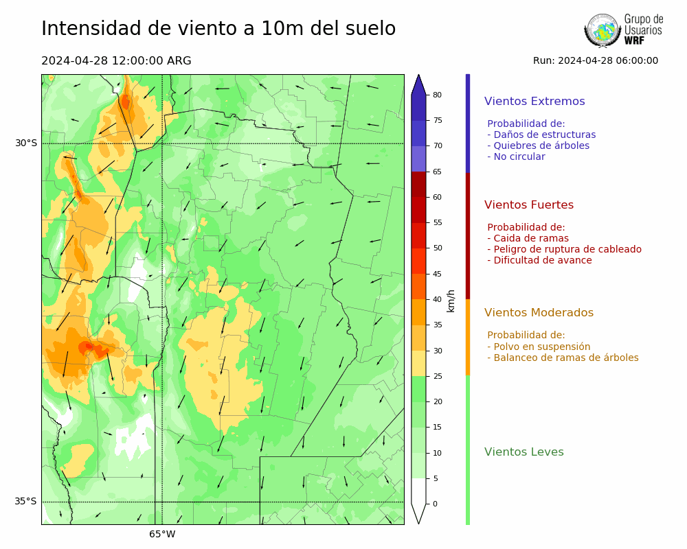 • Intensidad máxima: 12.44 km/h (30/04/2024 02hs.)