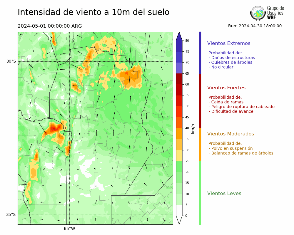 • Intensidad máxima: 14.86 km/h (01/05/2024 02hs.)