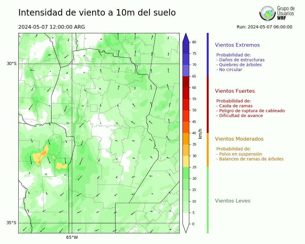 • Intensidad máxima: 6.33 km/h (07/05/2024 17hs.)