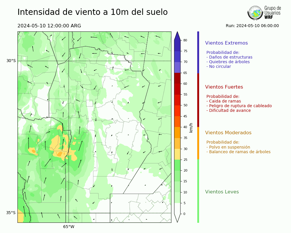• Intensidad máxima: 13.56 km/h (12/05/2024 05hs.)