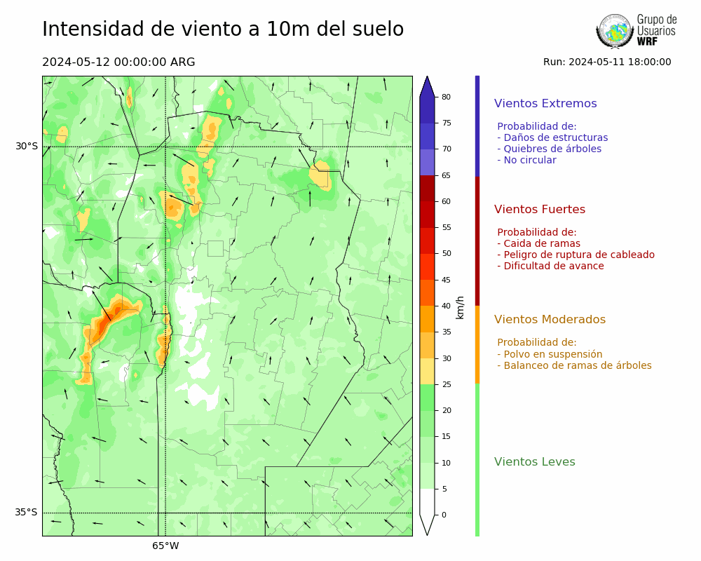 • Intensidad máxima: 10.27 km/h (12/05/2024 04hs.)