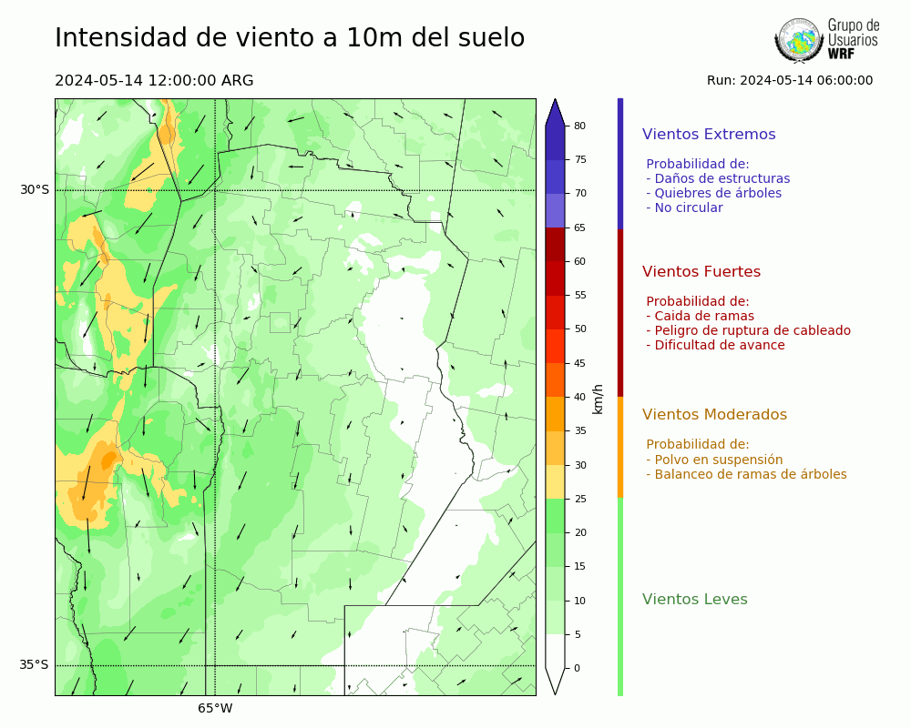 • Intensidad máxima: 9.89 km/h (15/05/2024 00hs.)