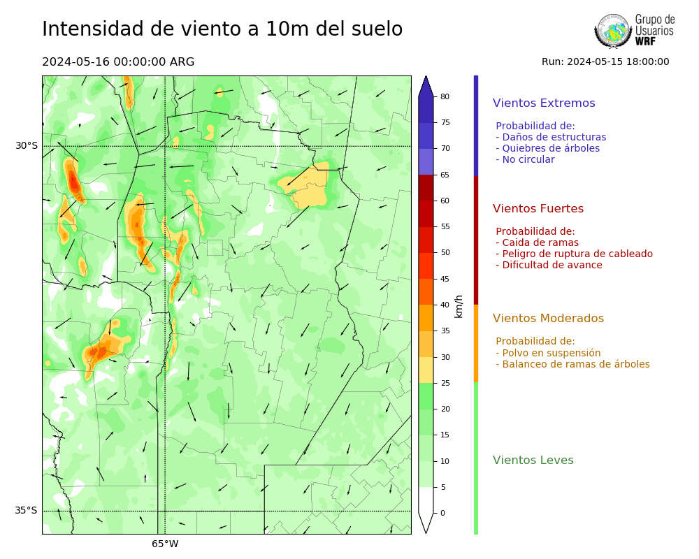 • Intensidad máxima: 9.41 km/h (17/05/2024 01hs.)