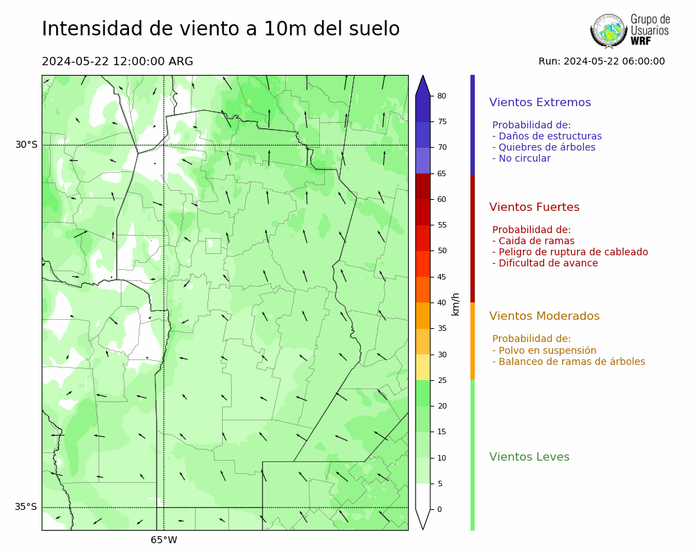 • Intensidad máxima: 14.66 km/h (22/05/2024 17hs.)