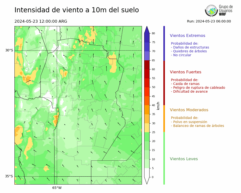 • Intensidad máxima: 32.19 km/h (23/05/2024 22hs.)