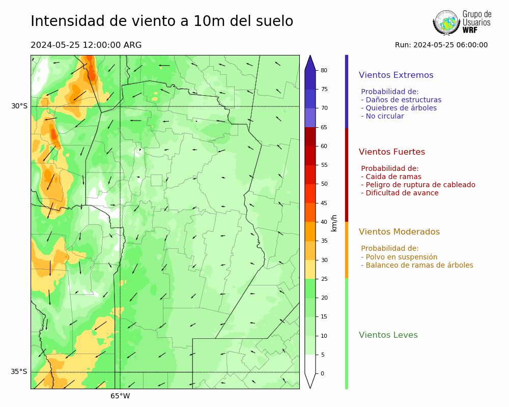 • Intensidad máxima: 11.52 km/h (25/05/2024 21hs.)