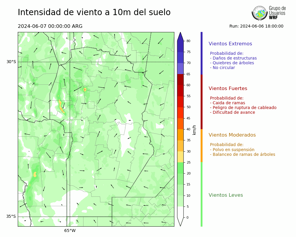 • Intensidad máxima: 9.47 km/h (07/06/2024 05hs.)