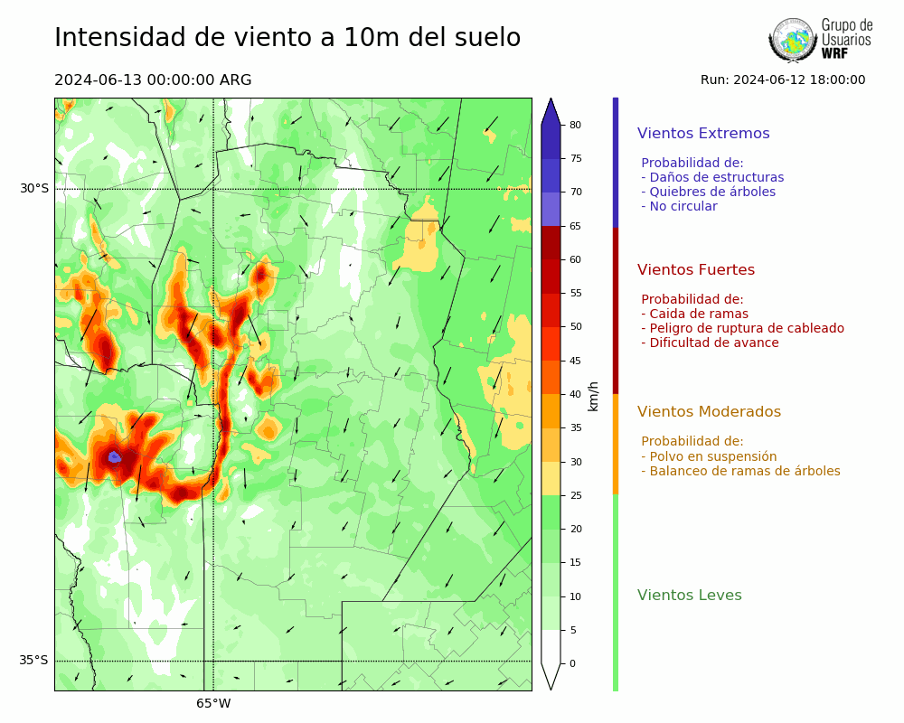 • Intensidad máxima: 17.01 km/h (13/06/2024 01hs.)