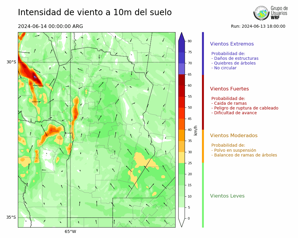 • Intensidad máxima: 15.29 km/h (14/06/2024 04hs.)