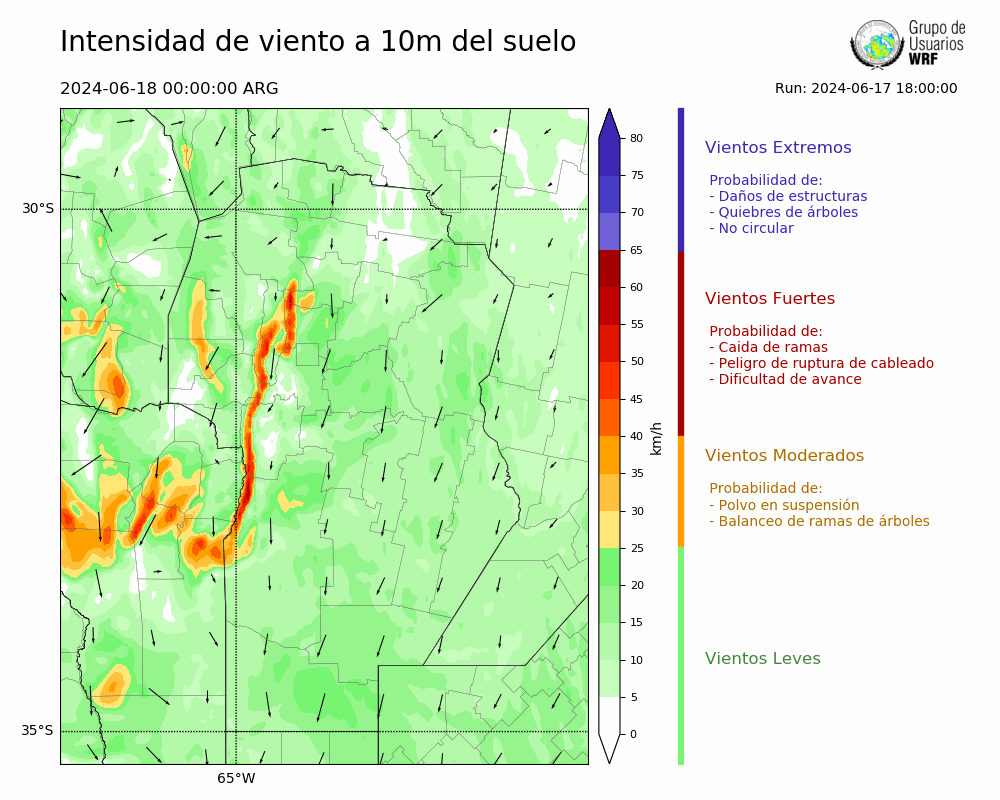 • Intensidad máxima: 18.65 km/h (18/06/2024 11hs.)