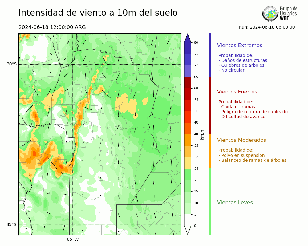 • Intensidad máxima: 18.79 km/h (18/06/2024 12hs.)