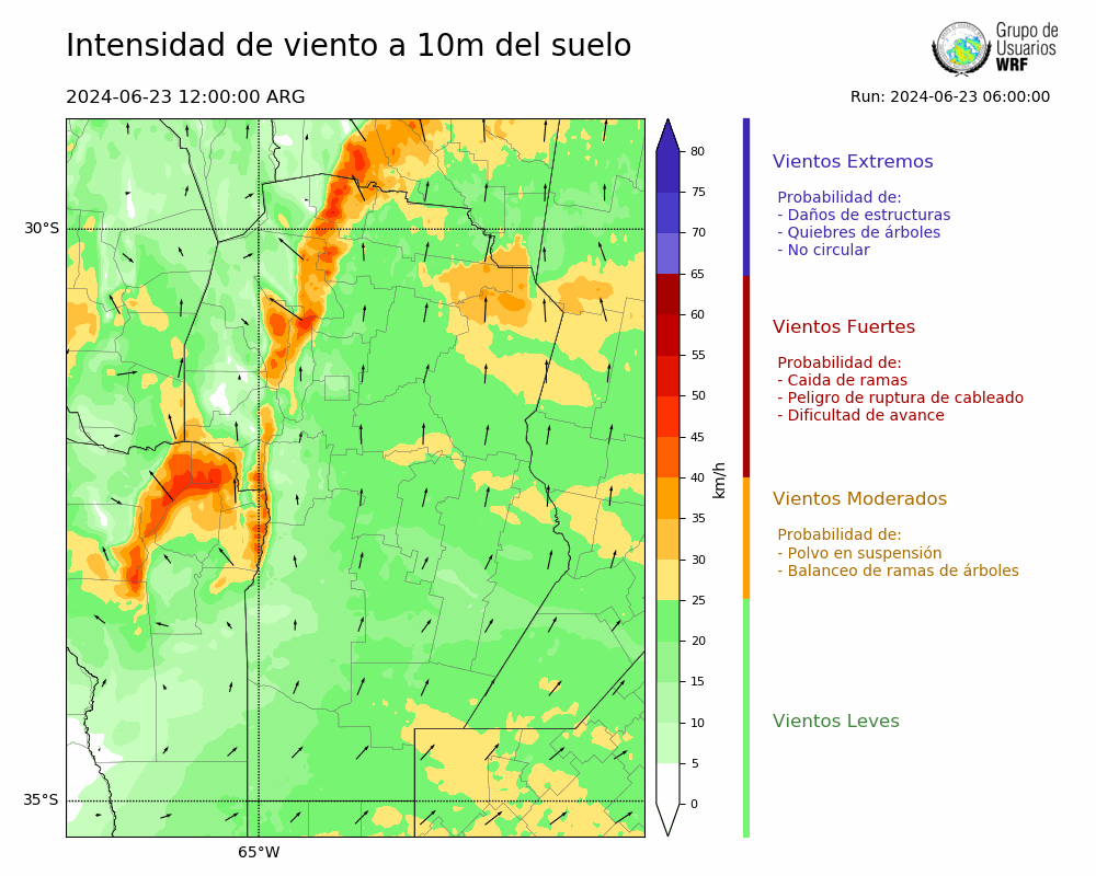 • Intensidad máxima: 9.34 km/h (25/06/2024 23hs.)