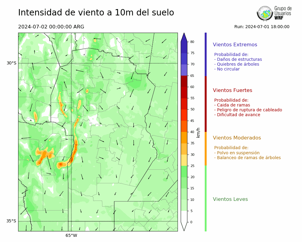 • Intensidad máxima: 9.46 km/h (04/07/2024 01hs.)