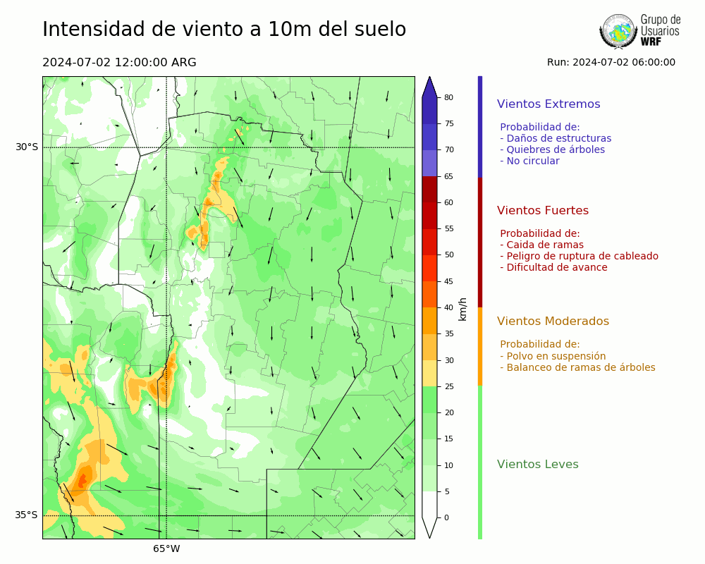 • Intensidad máxima: 8.04 km/h (04/07/2024 01hs.)