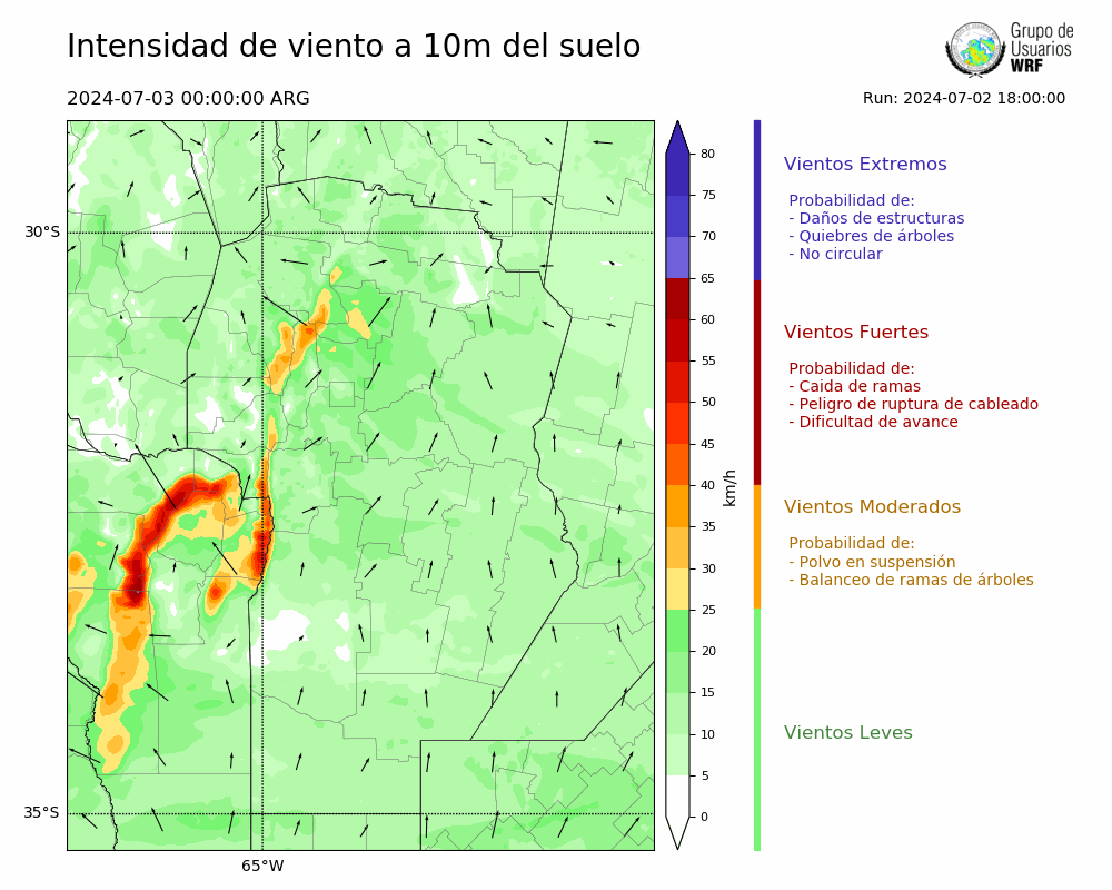 • Intensidad máxima: 12.65 km/h (03/07/2024 02hs.)