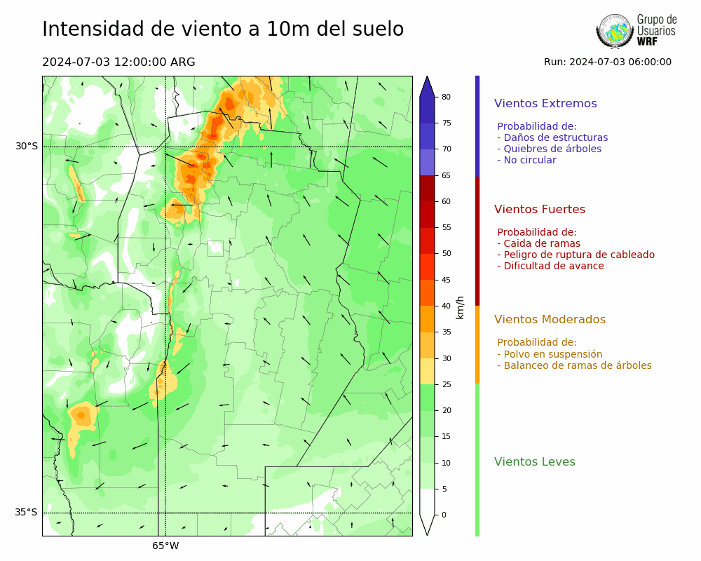 • Intensidad máxima: 15.25 km/h (03/07/2024 13hs.)
