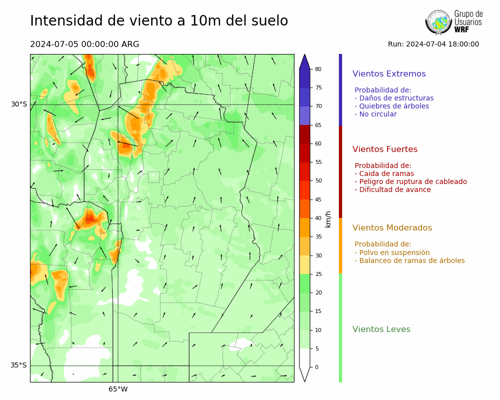 • Intensidad máxima: 9.55 km/h (05/07/2024 09hs.)