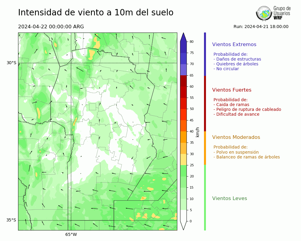 • Intensidad máxima: 13.28 km/h (22/04/2024 11hs.)