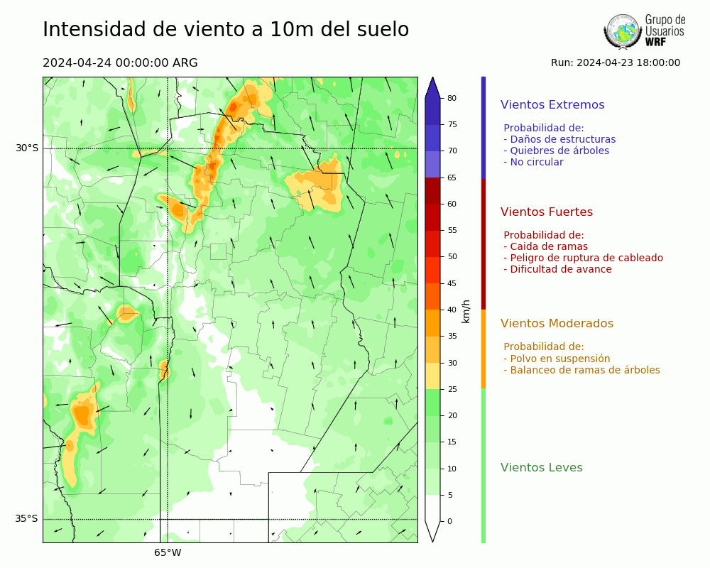 • Intensidad máxima: 10.74 km/h (24/04/2024 07hs.)