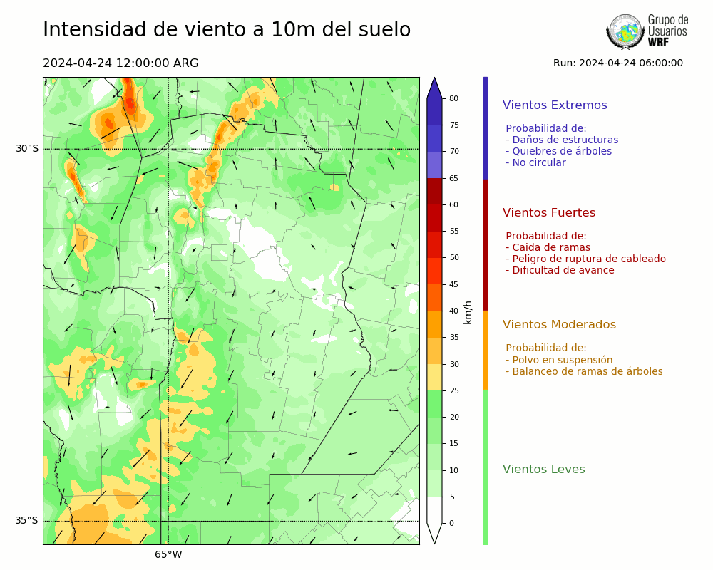 • Intensidad máxima: 10.76 km/h (25/04/2024 04hs.)