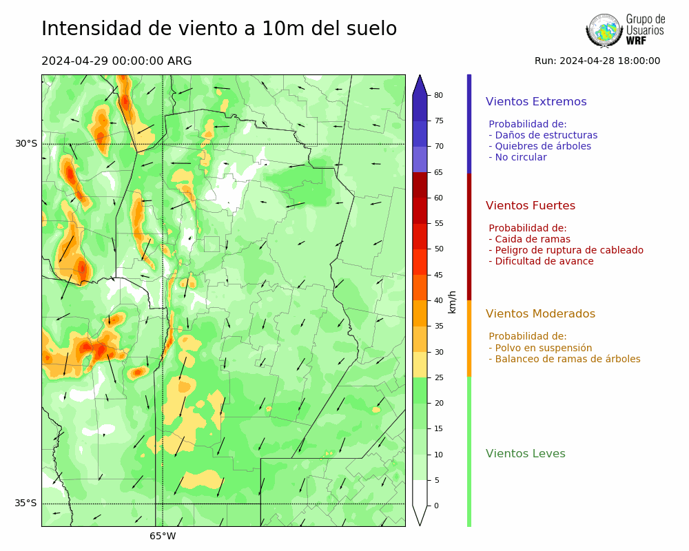 • Intensidad máxima: 20.44 km/h (29/04/2024 11hs.)