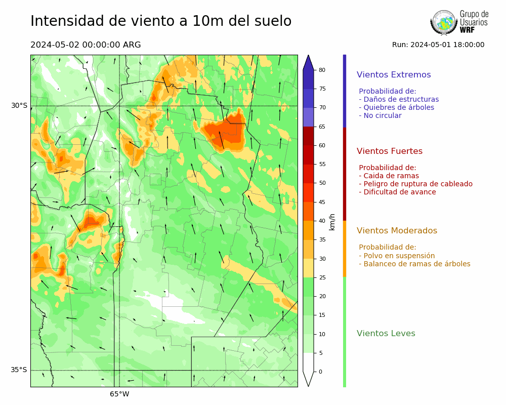 • Intensidad máxima: 10.24 km/h (04/05/2024 03hs.)