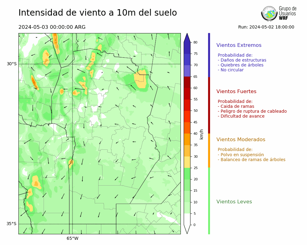 • Intensidad máxima: 12.98 km/h (04/05/2024 02hs.)