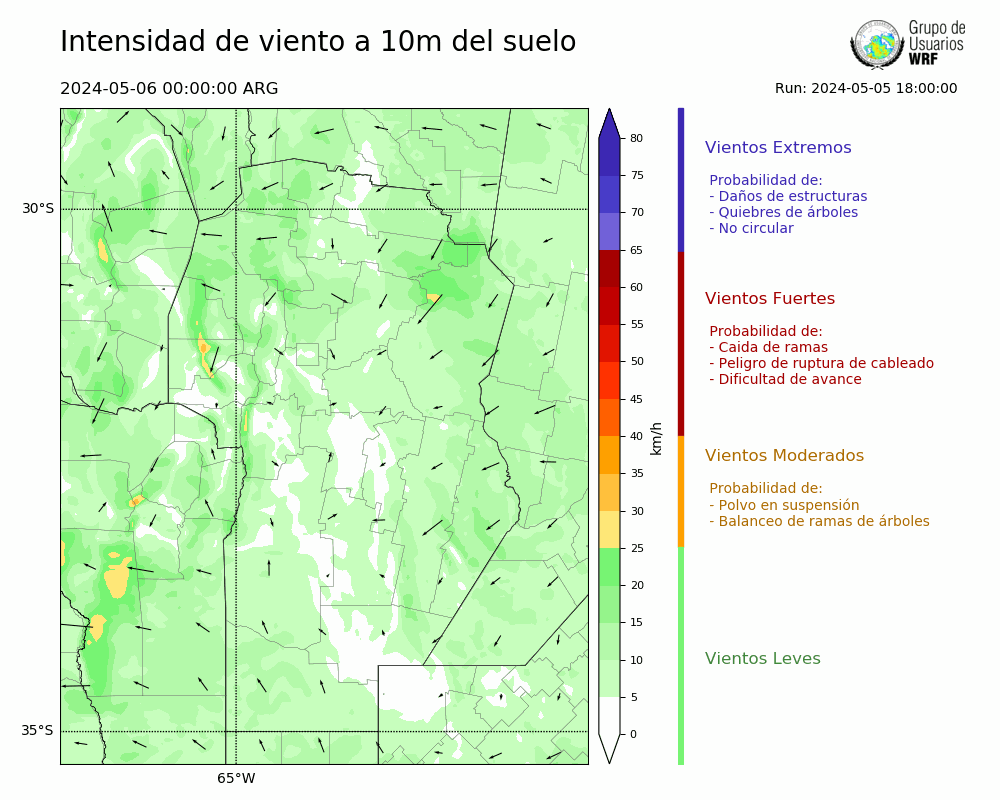 • Intensidad máxima: 11.98 km/h (06/05/2024 00hs.)