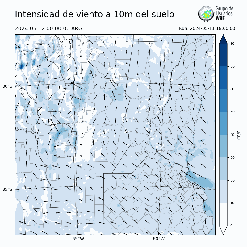 • Intensidad máxima: 11.37 km/h (12/05/2024 04hs.)