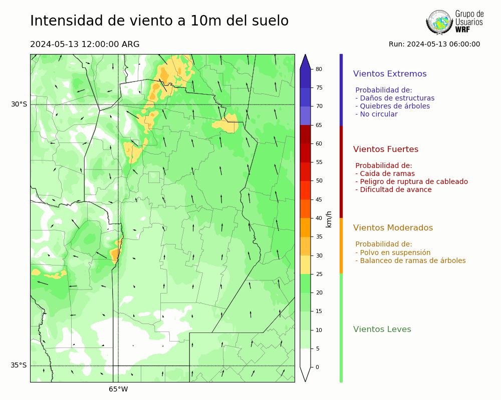 • Intensidad máxima: 13.91 km/h (13/05/2024 17hs.)