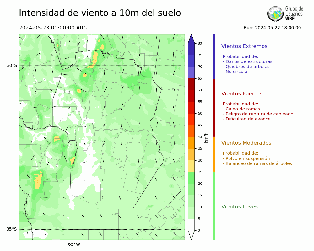 • Intensidad máxima: 15.22 km/h (23/05/2024 10hs.)