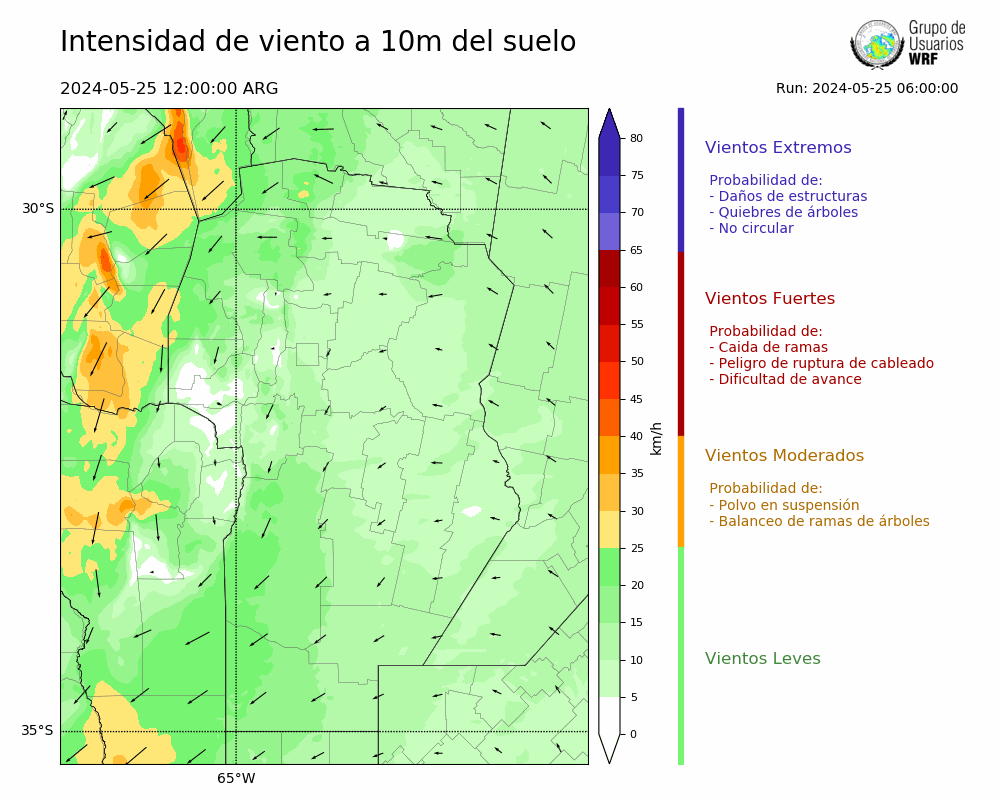 • Intensidad máxima: 9.72 km/h (25/05/2024 18hs.)
