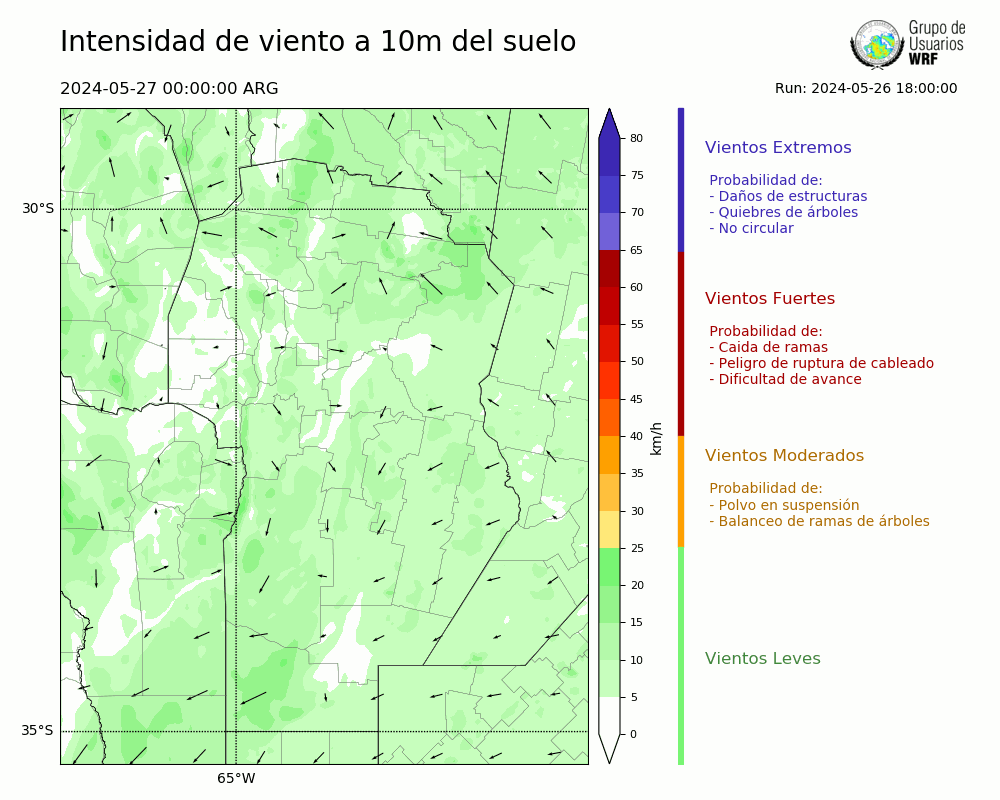 • Intensidad máxima: 10.07 km/h (27/05/2024 01hs.)