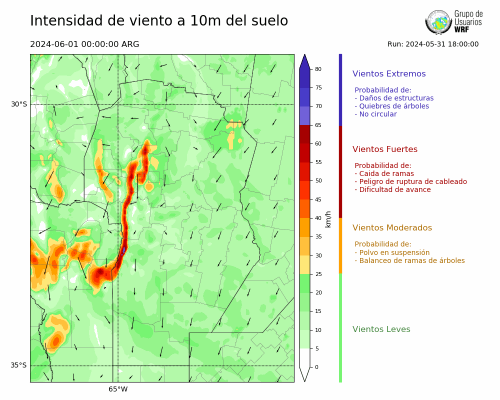 • Intensidad máxima: 10.45 km/h (02/06/2024 02hs.)