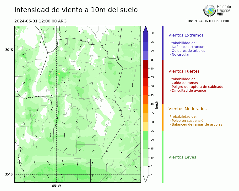 • Intensidad máxima: 12.13 km/h (01/06/2024 16hs.)