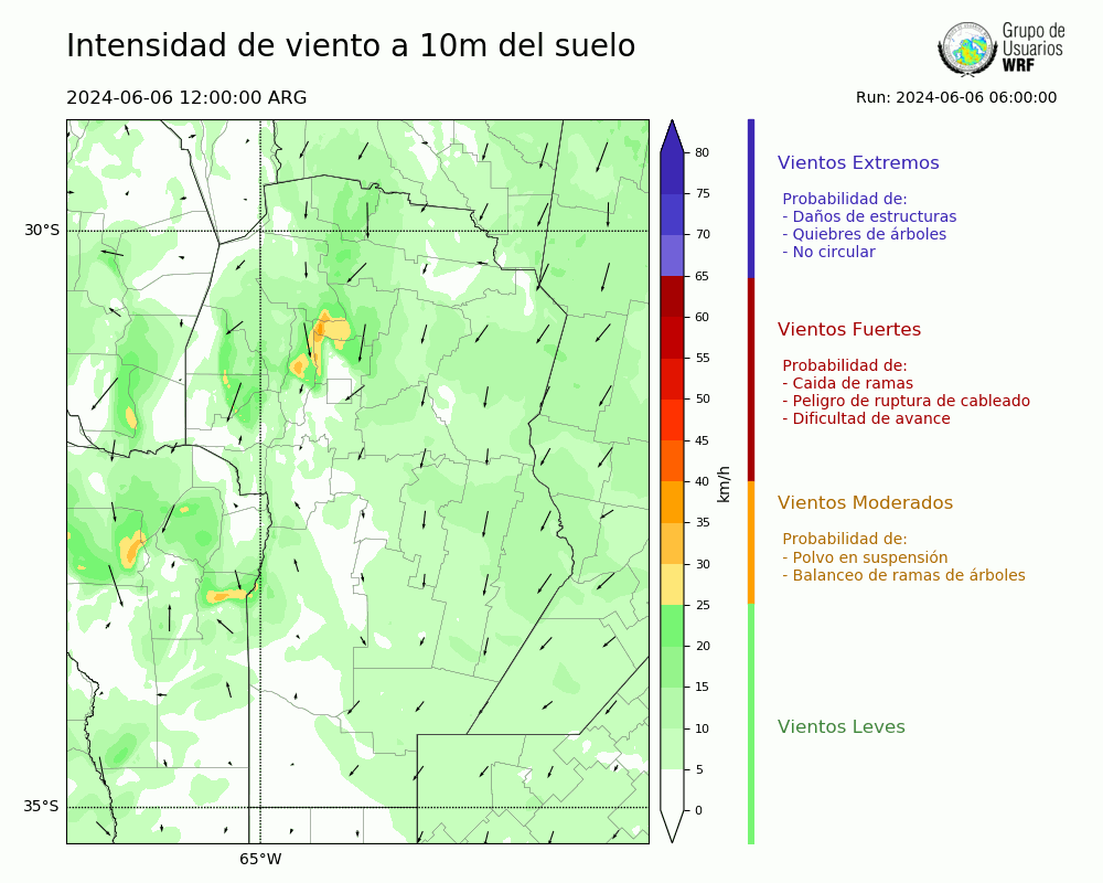 • Intensidad máxima: 8.53 km/h (06/06/2024 14hs.)