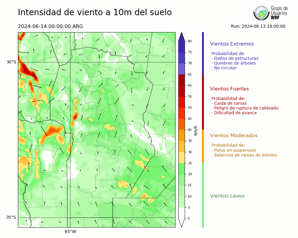 • Intensidad máxima: 15.66 km/h (14/06/2024 04hs.)