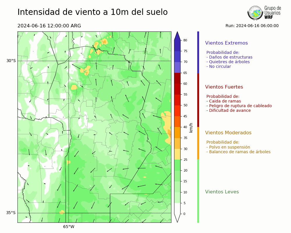 • Intensidad máxima: 6.77 km/h (18/06/2024 23hs.)