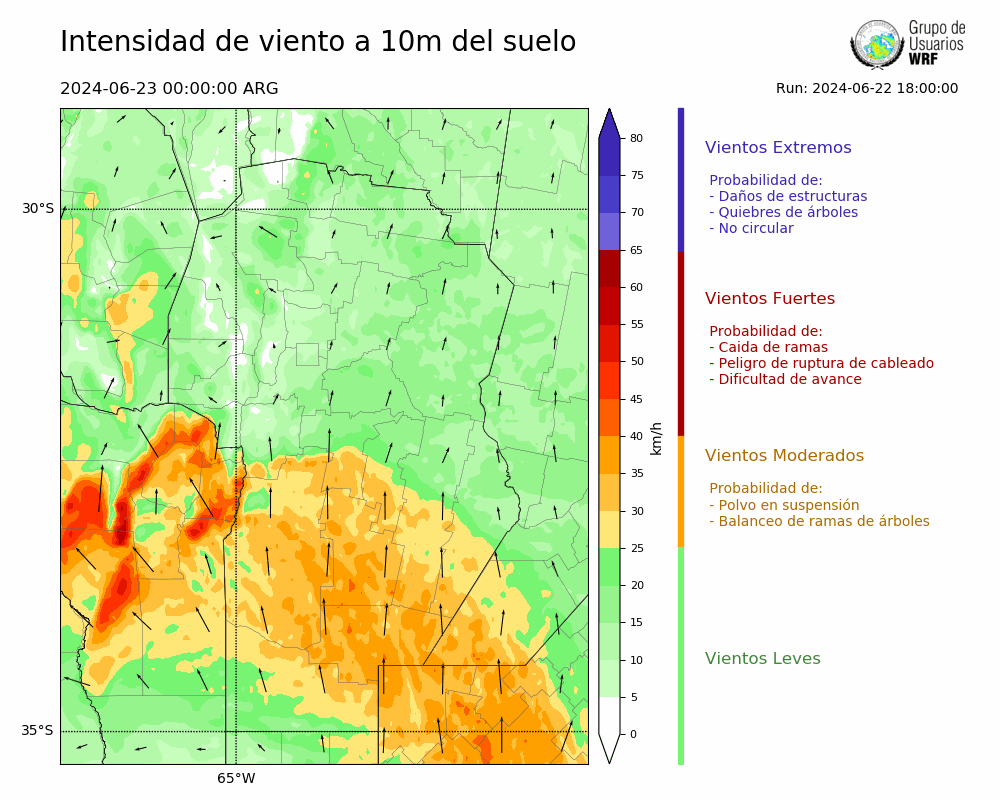 • Intensidad máxima: 36.80 km/h (23/06/2024 04hs.)