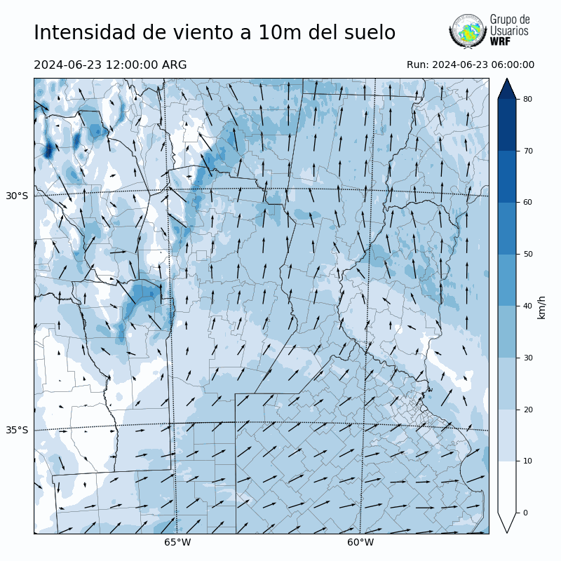 • Intensidad máxima: 10.14 km/h (25/06/2024 22hs.)