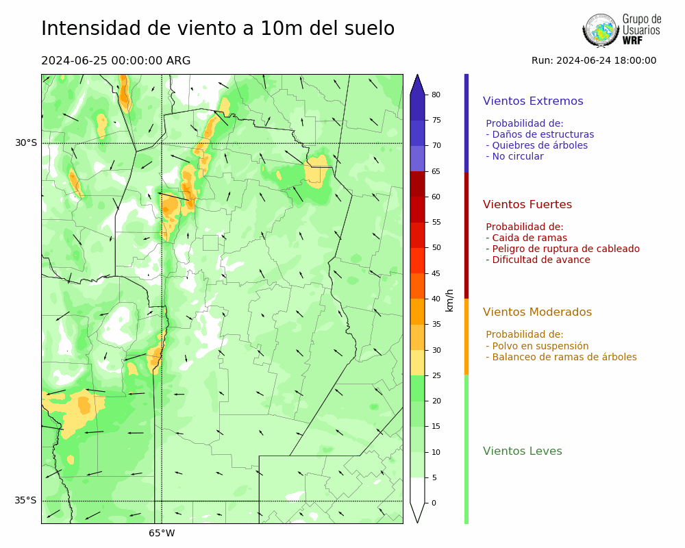 • Intensidad máxima: 11.49 km/h (26/06/2024 02hs.)