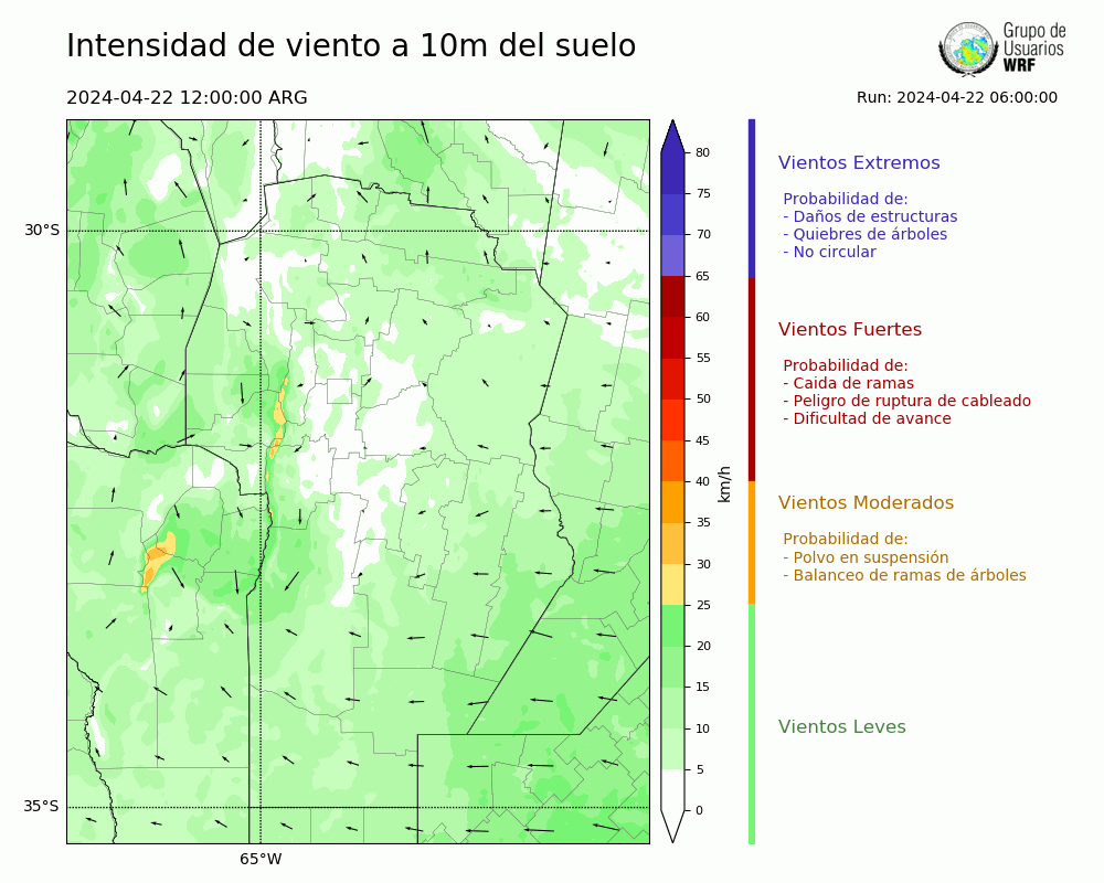 • Intensidad máxima: 15.18 km/h (22/04/2024 18hs.)
