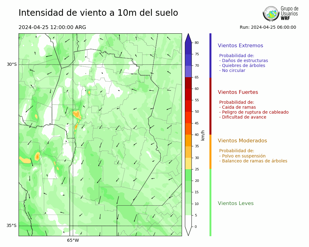 • Intensidad máxima: 14.10 km/h (25/04/2024 21hs.)