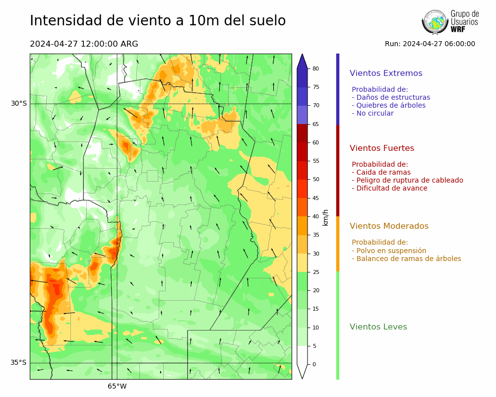• Intensidad máxima: 26.67 km/h (27/04/2024 14hs.)