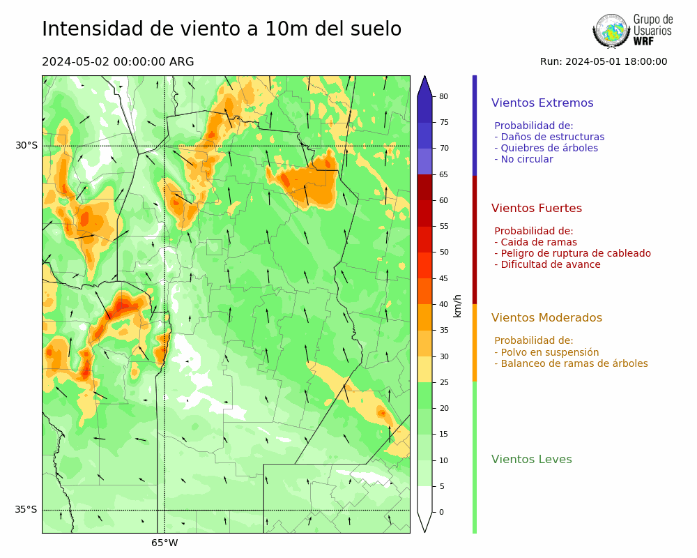 • Intensidad máxima: 10.33 km/h (04/05/2024 03hs.)