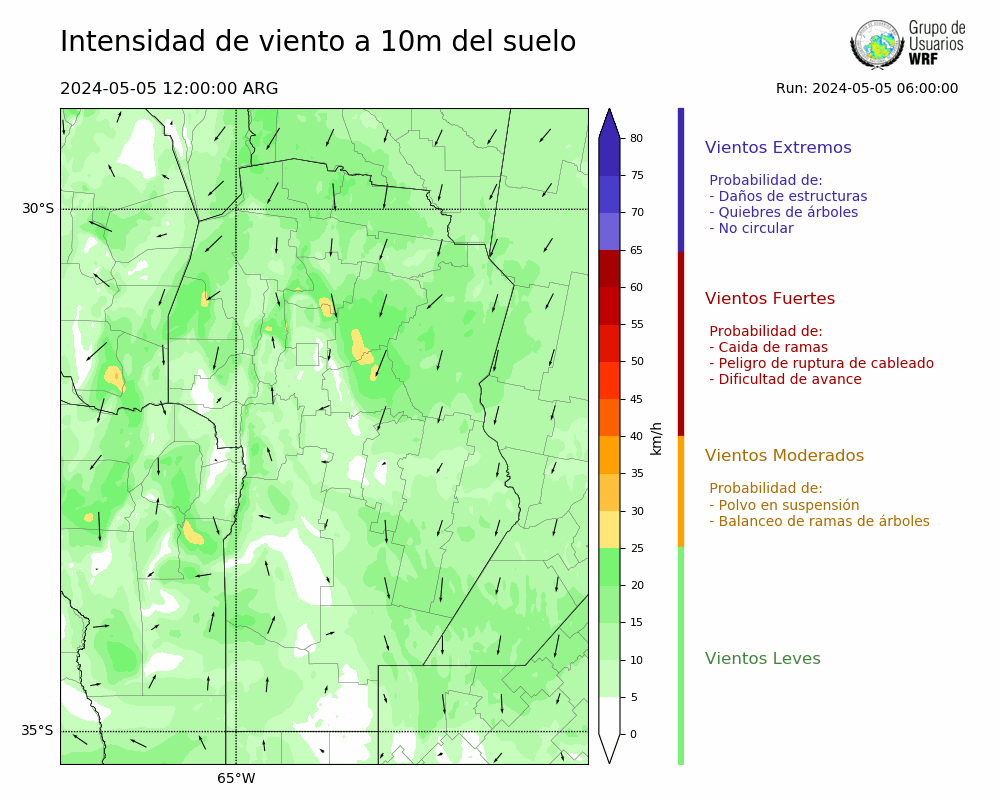 • Intensidad máxima: 8.72 km/h (07/05/2024 23hs.)
