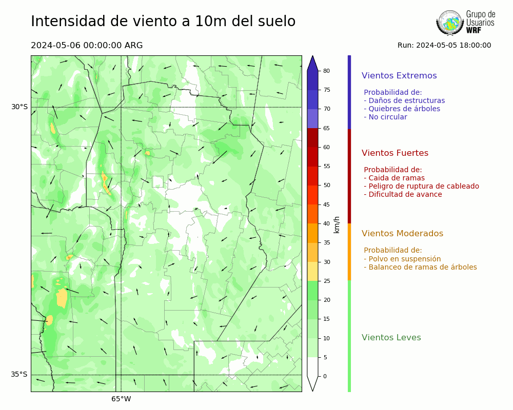 • Intensidad máxima: 12.62 km/h (06/05/2024 00hs.)