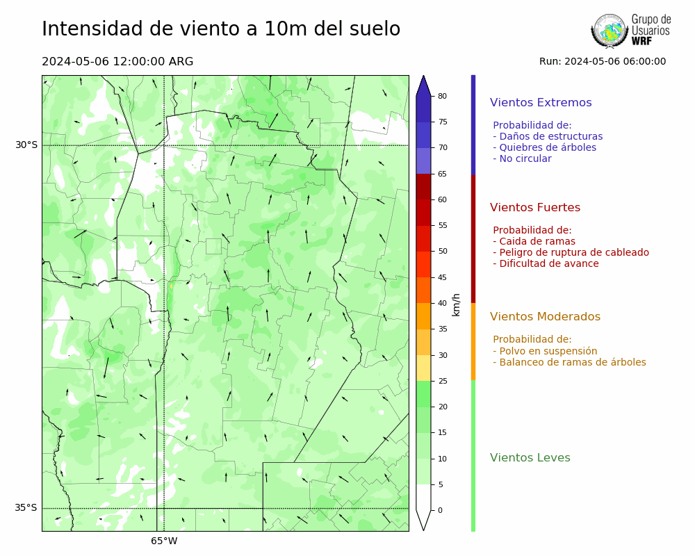 • Intensidad máxima: 11.52 km/h (07/05/2024 16hs.)