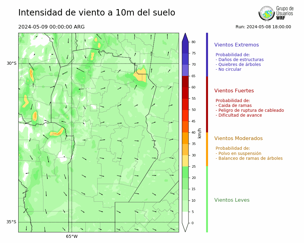• Intensidad máxima: 8.68 km/h (09/05/2024 03hs.)