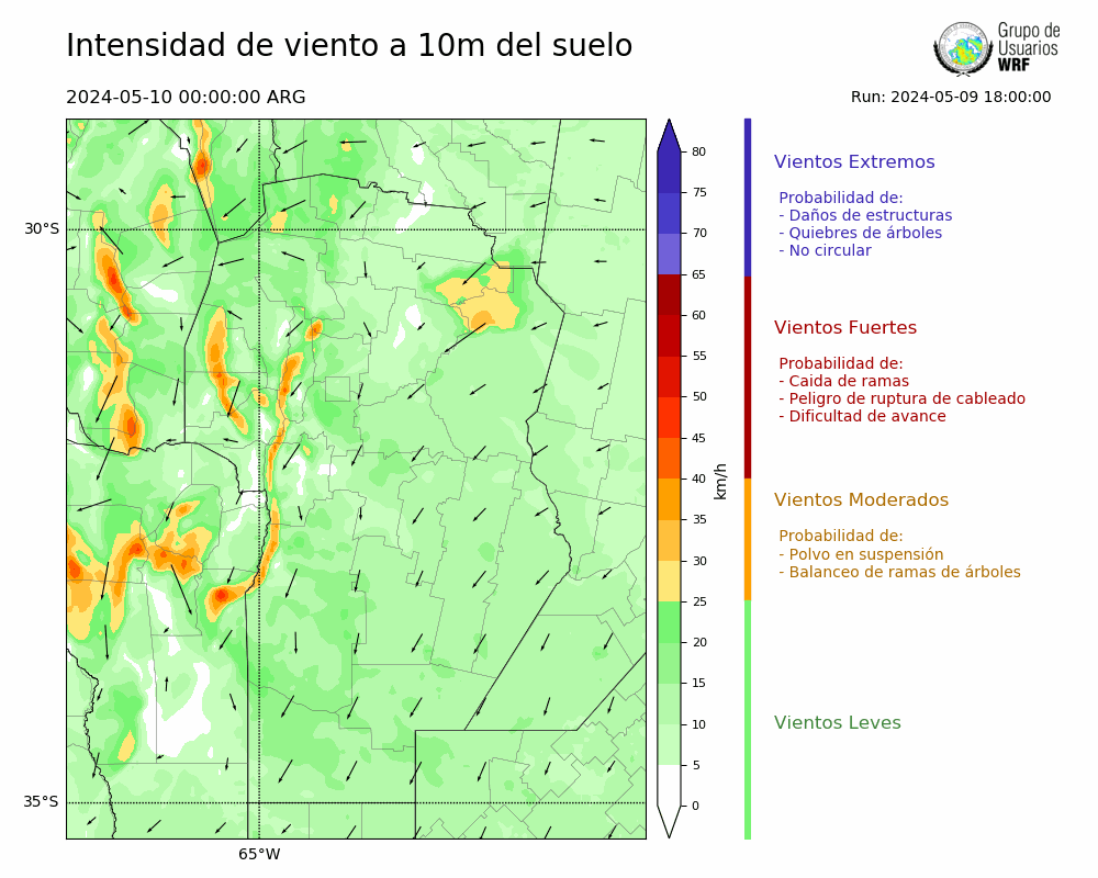 • Intensidad máxima: 14.84 km/h (10/05/2024 00hs.)